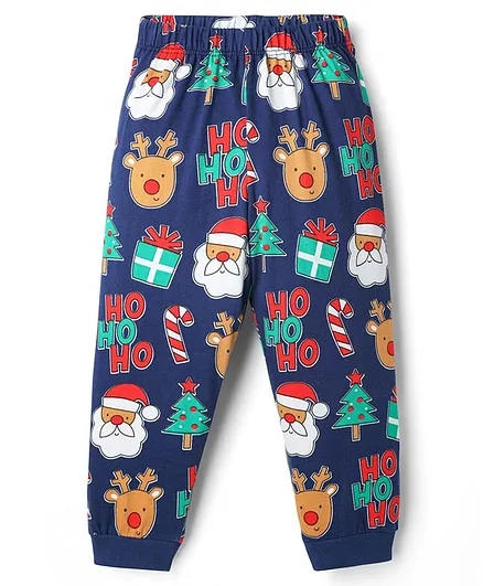 Babyhug Cotton Knit Full Sleeve Full Sleeves T-Shirt and Pajama Night Suit with Christmas Print - Navy Blue