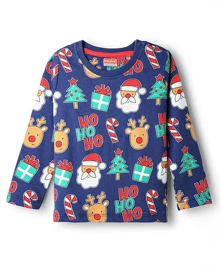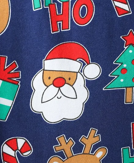 Babyhug Cotton Knit Full Sleeve Full Sleeves T-Shirt and Pajama Night Suit with Christmas Print – Navy Blue