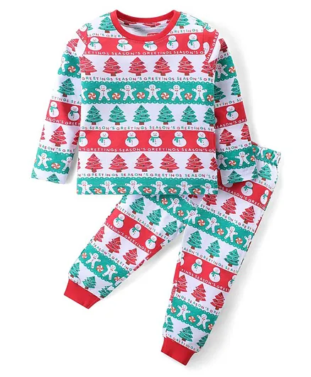 Babyhug Cotton Knit Full Sleeves Night Suit with Christmas Theme 2-3y