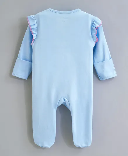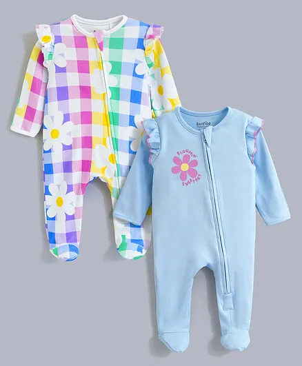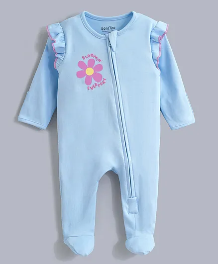 Bonfino 100% Cotton Flowers Printed Full Sleeves Frilled Footed Sleep Suits 6-9m