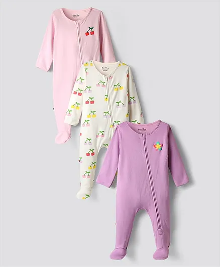 Bonfino Fruit and Flower Printed Sleepsuits (Pack Of 3) - Multicolor 3-6m
