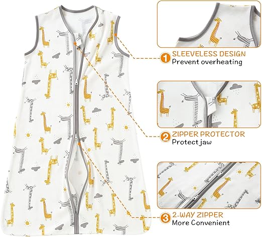 POSENPRO 2 Pack Sleep Sack, Unisex Sleeveless Cotton Wearable Blanket With 2 Way Zipper, All Season Soft Sleep Bag Suit for Baby Toddler - Giraffe