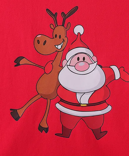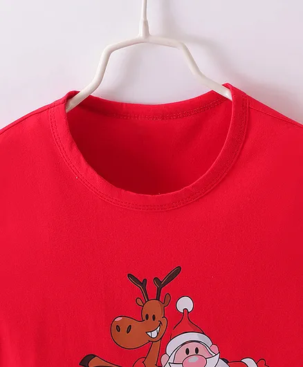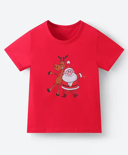 SAPS Cotton Christmas Theme Reindeer and Santa Printed Short Sleeves T-Shirt